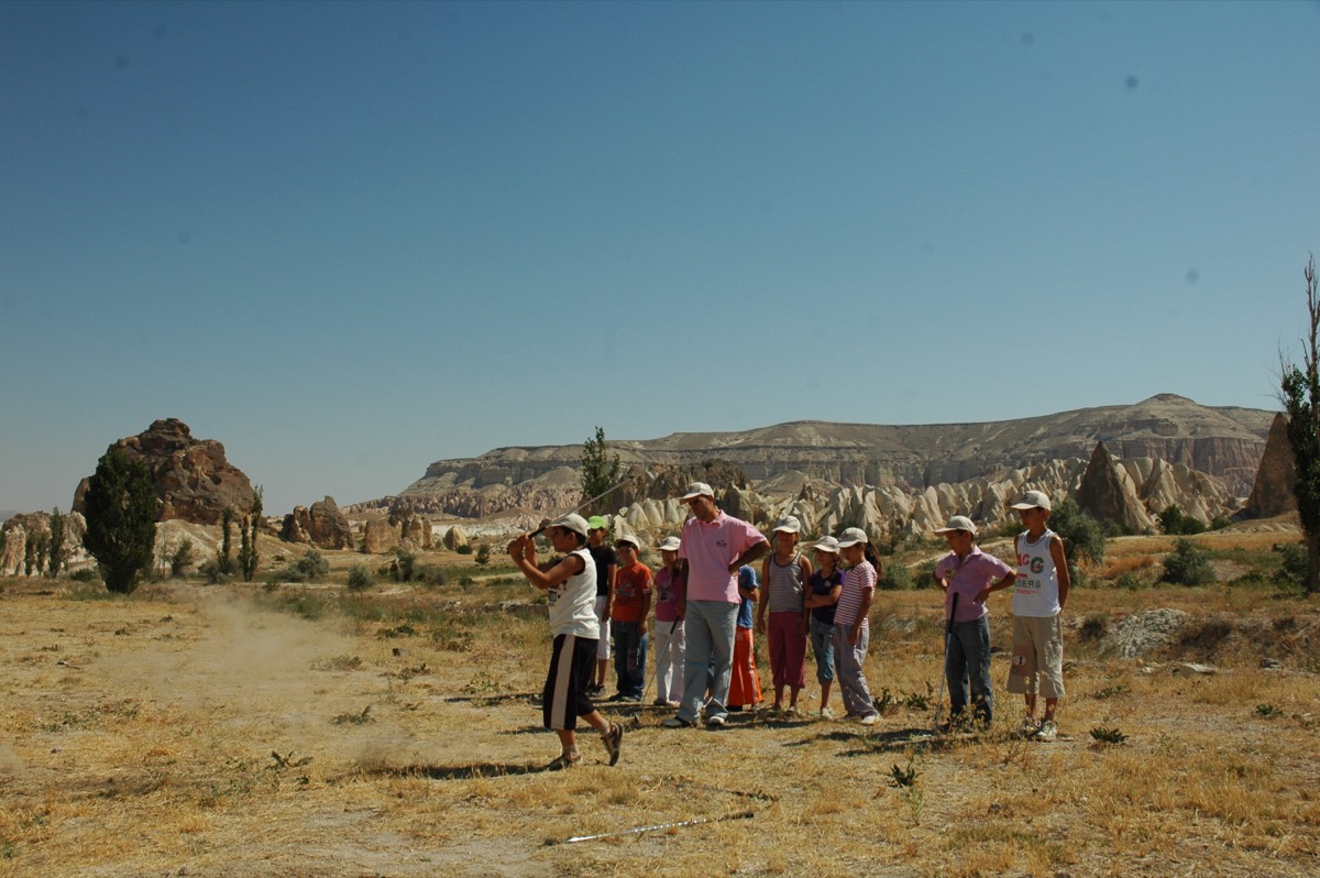 A total of 130 primary school students from 6 different regional schools in the Cappadocia region, who had never had the opportunity to receive golf training, were given free golf lessons by Cross Golf professionals during the summer vacation.